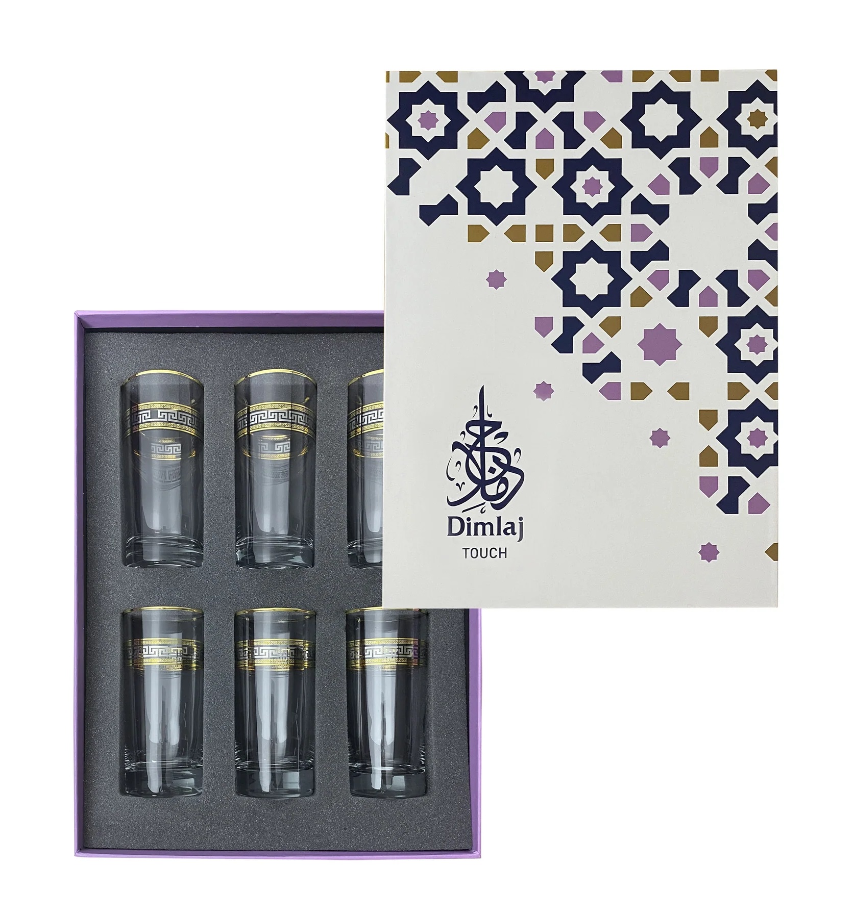 Dimlaj Glass Tumbler Gold& Platinum Touch Minerva Set of 6 pcs
