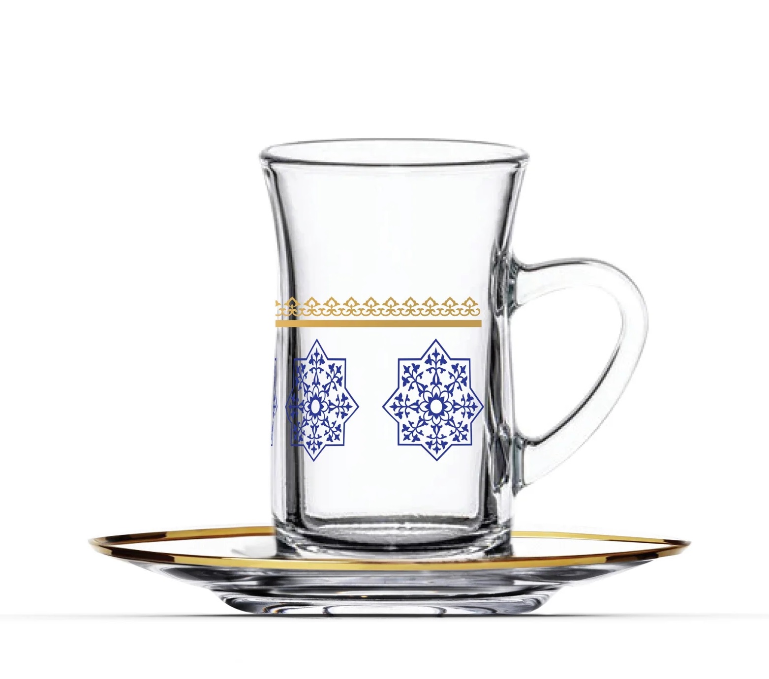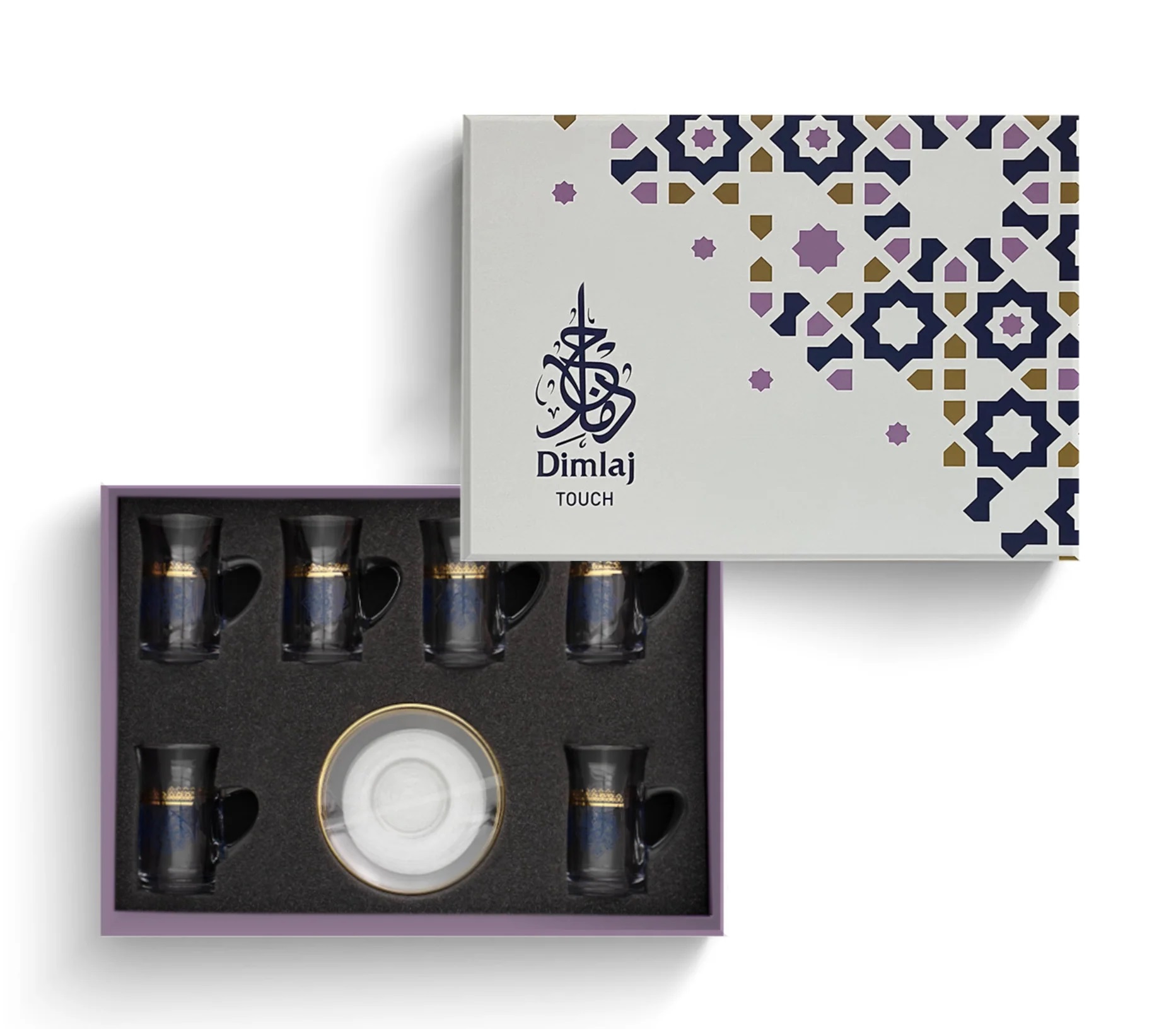 Dimlaj Tea Cup & Saucer Gold Touch Aster 12 pcs Set