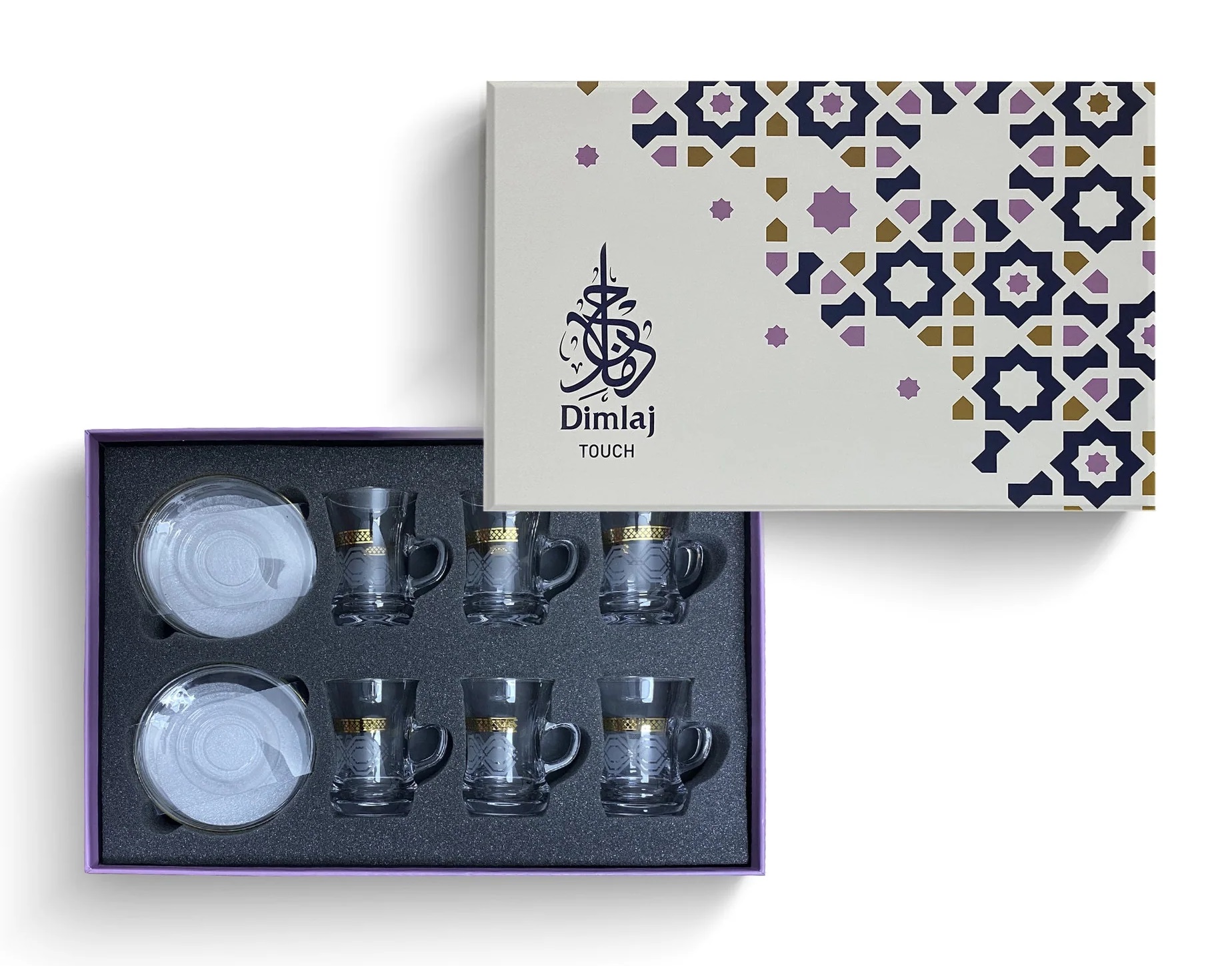 Dimlaj Tea Cup & Saucer Gold Touch Diamond 12 pcs Set