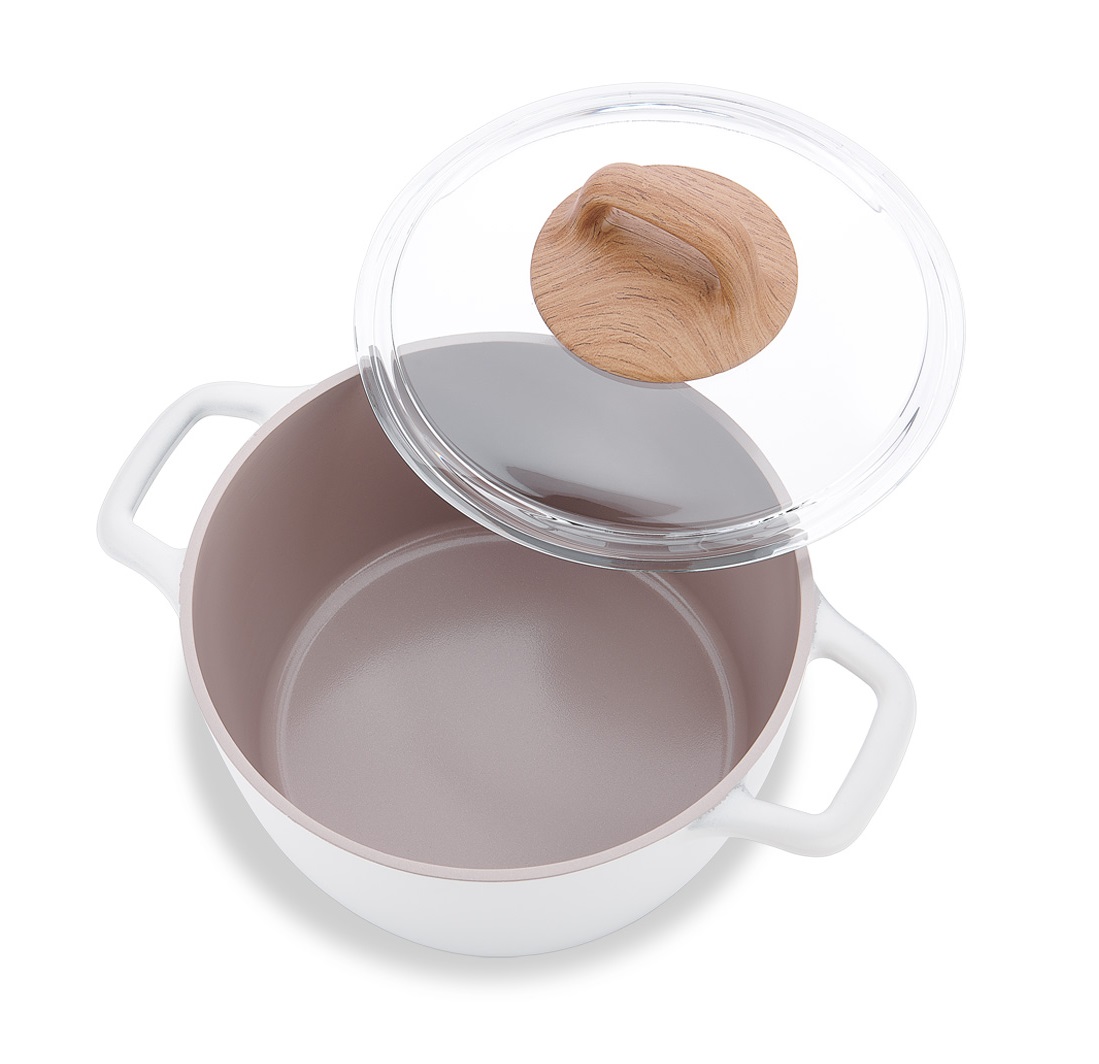 - Ceramic coating with excellent non-stick properties on interior surfaces